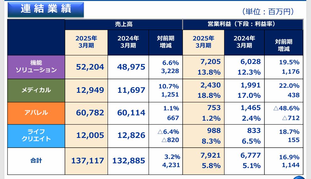 ちなみに、2025年3月期連結決算のセグメント別の資料も貼ってみる。