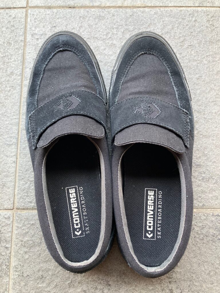 その後、2021年にコンバースのキャンバスと一部合皮スエード製のローファー型スニーカーをYahoo!ショッピングで5500円(税込み)くらいで買って、現在ではスーツ時にはもっぱらこれを着用している。